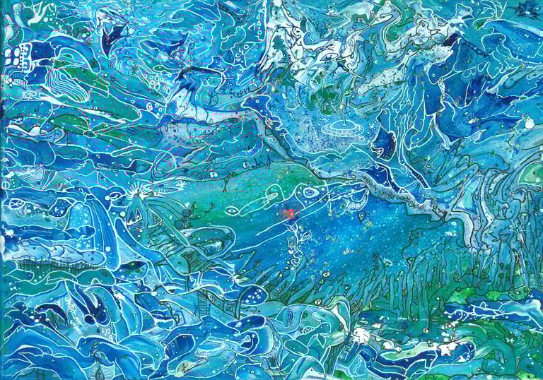 All my art is intuitive, spontaneous expression. Every piece is a unique transmission of light codes and a invitation to travel to other realities.